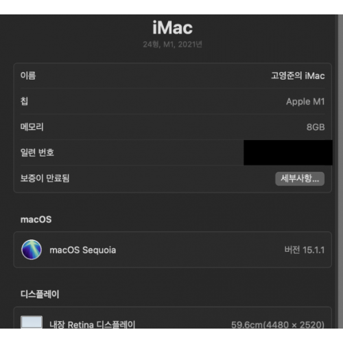 M1 iMAC 24inch 21년에 구매해서 흠집하나 없이 사용중입니다.