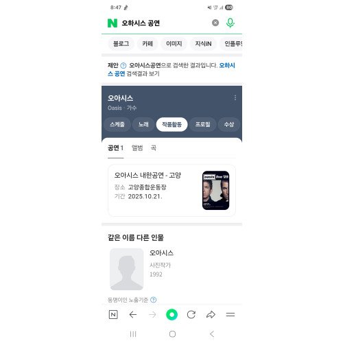오아시스 스탠딩 A석 580x 석입니다.